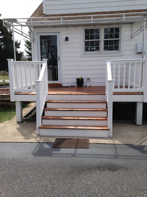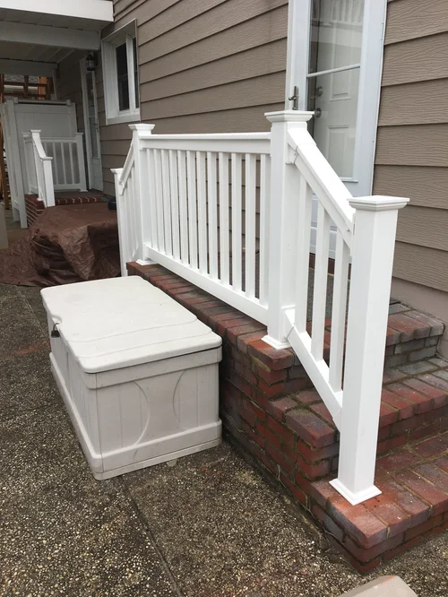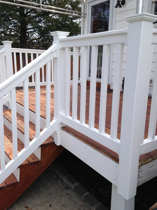 Vinyl Railings are great way to upgrade your existing deck and railings. Vinyl railings can add beauty and function. Vinyl Railings and composite decking are a great way to add value to existing deck. Often you can use your existing wood frame to make for an easy installation.
